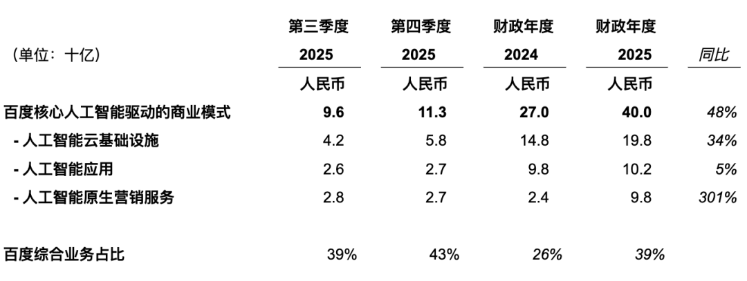 💡Baidu AI revenue: 400B RMB (31% of total)—first breakdown revealed.