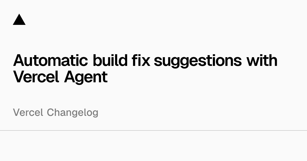Vercel Agent now offers automatic code-fix suggestions for broken builds in GitHub PR reviews and Vercel Dashboard. It scans deployments for errors, analyzes code and logs, and proposes fixes as PR changes for review. This streamlines debugging without manual intervention.